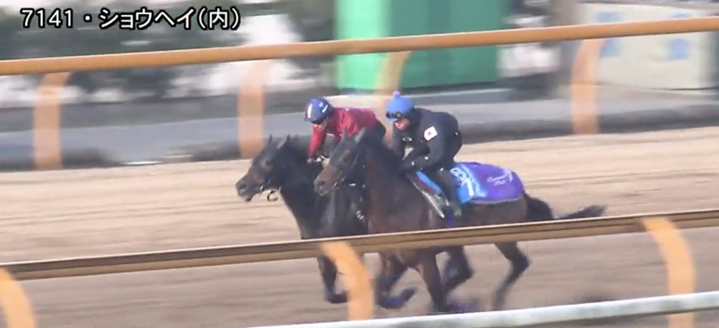 菊花賞14着からの出走となるショウヘイは川田騎手を背にしてのコースでの併せ馬。