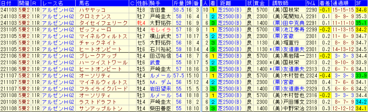古くは◎ソールインパクト、◎パフォーマプロミス、近年も◎ブレークアップ、◎チャックネイトなどなど、2400mでは足りない、2500mでひと押しが利く馬を狙うだけで正解に辿り着ける簡単なレースになるので、