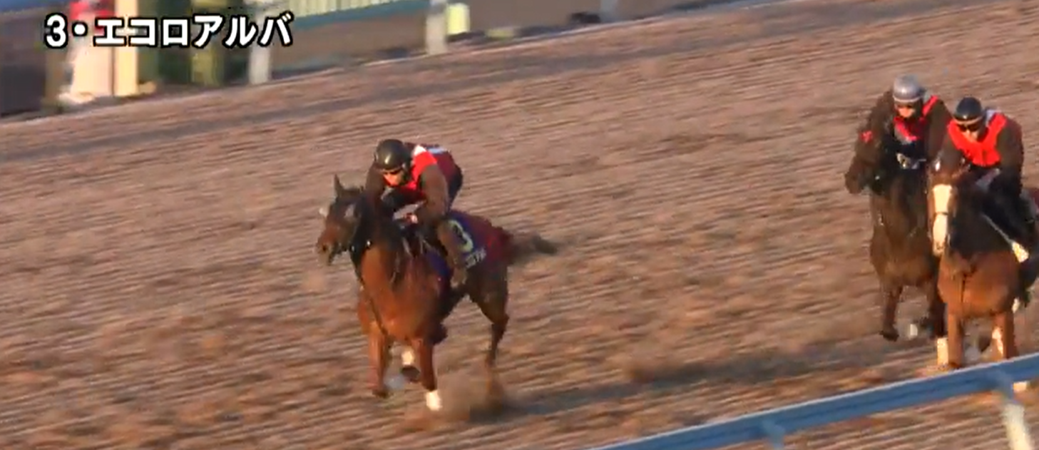 サウジアラビアRCの勝ち馬エコロアルバはコースでの3頭併せ。