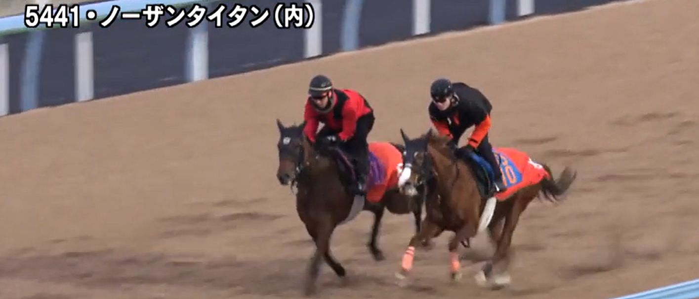東京の新馬戦を快勝したノーザンタイタンはコースでの併せ馬。