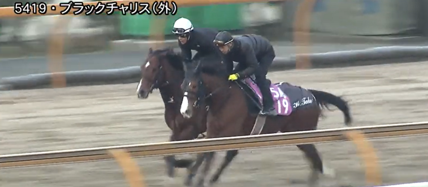 函館の初戦をレコード勝ちしているブラックチャリスはコースでの併せ馬。