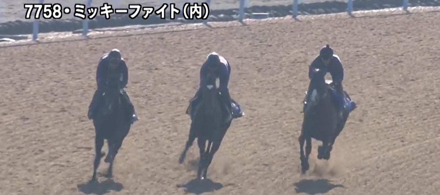 帝王賞の勝ち馬ミッキーファイトはコースでの3頭併せ。