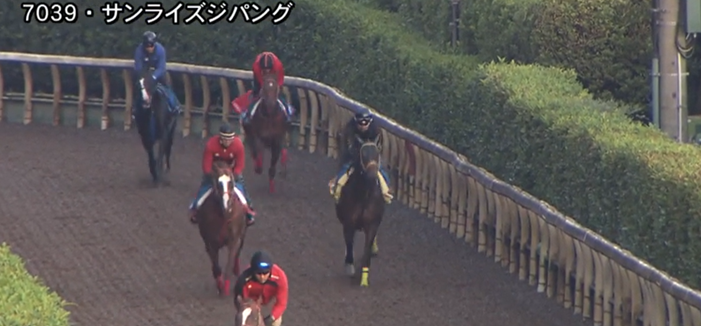 マイルチャンピオンシップ南部杯で期待を裏切っているサンライズジパングは坂路で14.3-14.2-12.9-12.4と軽快な動きを披露。
