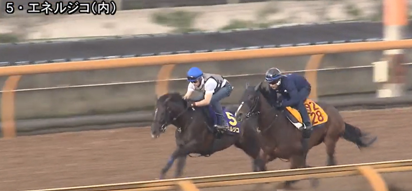 青葉賞の勝ち馬エネルジコは滞在先の栗東、コースでも併せ馬。