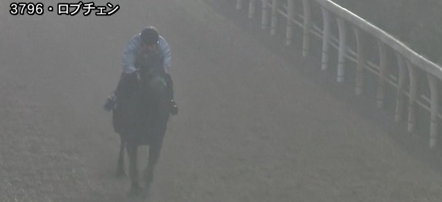 輸送を考慮しての仕上げとはいえ、16.6-14.6-14.8-14.3-12.8-12.0とちょっと楽をさせすぎかな…という内容ではあるが、広い可動域を活かした内面に余裕を感じる動きを見るとリラックスして走れている事を評価したい追い切り。