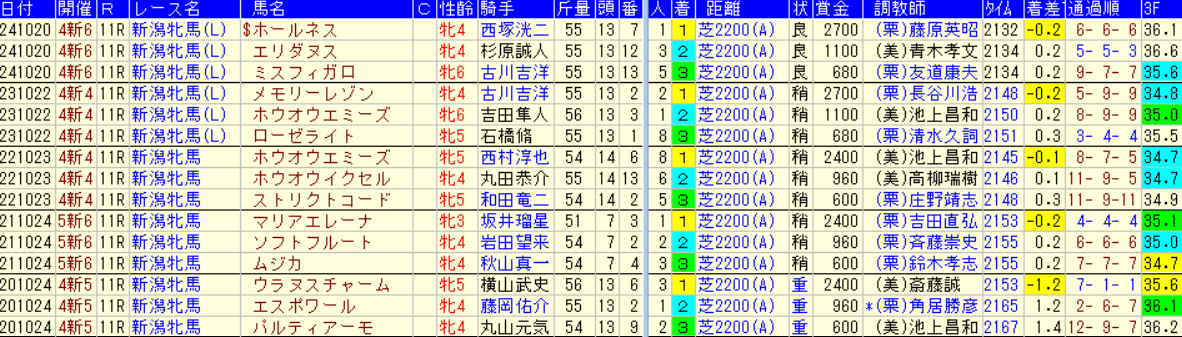 勝ち馬はさて置き、2~3着馬とは通ったコースだけの差と思えば新潟では安定した競馬を繰り返しているので、名だけのリステッド競争なら適性、経験値だけで何とかなるのでは。