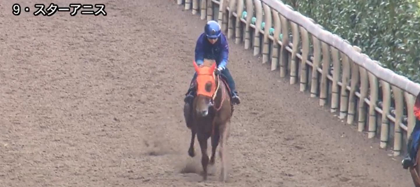 今回の追い切りでは阪神ジュベナイルフィリーズの勝ち馬スターアニスが単走で素軽い動きを見せていたので、最終追い切りでもう少し気持ちが入れば完璧では。