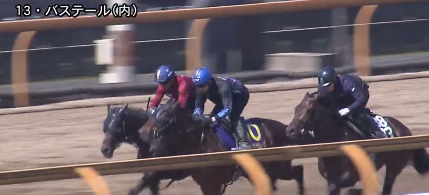 弥生賞の勝ち馬バステールはサウンドムーブとの川田騎手を背にしてのコースでの併せ馬。
