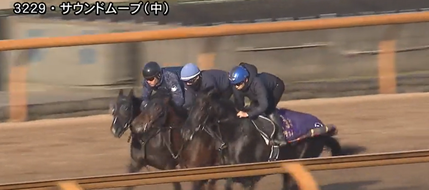 シンザン記念2着のサウンドムーブはコースでの3頭併せ。