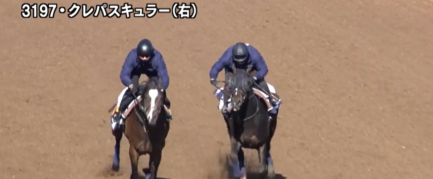ひいらぎ賞の勝ち馬クレパスキュラーは坂路での併せ馬。