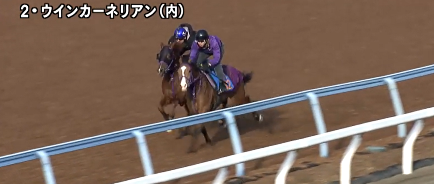 香港スプリント11着からの参戦となるウインカーネリアンはコースでの併せ馬。